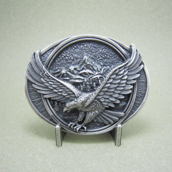 Deze Silver Plated Adelaar Western Metal Riem Gesp/Buckle is gemaakt van massief metaal. met een silveren patin,
