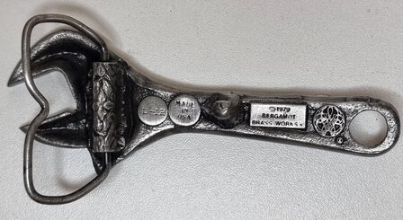 Deze Vintage moersleutel as kleurige Riem Gesp/Buckle heeft de vorm van een Kettingzaag gemaakt van massief metaal